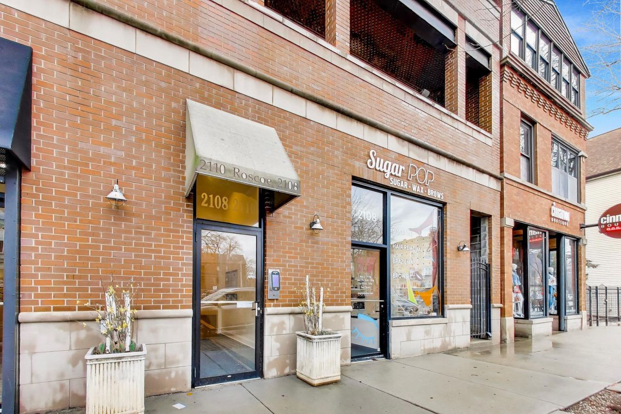 Prime Roscoe Village commercial condo offering 1,540 SF of well-maintained turnkey space ideal for service or professional users. Functional layout includes three private treatment rooms, bright front reception with excellent natural light, dedicated break room, utility/storage room, and a well-appointed bathroom. Zoned C1-2, allowing a wide variety of business types. Outstanding owner user opportunity in a highly walkable, thriving neighborhood corridor.