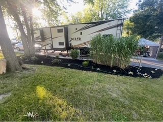 Lot 376 is an absolutely stunning corner lot in Woodsmoke Ranch offering a rare combination of convenience, functionality, and upgraded living! This beautifully landscaped property features a highly desirable horseshoe pull-through driveway, making it effortless to navigate with any size trailer, plus two built-in steel plates for secure and stable trailer jack placement. The lot is enhanced with thoughtfully designed landscaping, vibrant flowers, and ambient lighting throughout, creating the perfect outdoor setting day or night. A storage shed with a newer roof provides ample space for tools and equipment. Situated on the lot is a 2020 XLR Toy Hauler 5th Wheel measuring approximately 40 feet in length, designed to comfortably sleep up to 9 and equipped with a self-leveling system for easy setup. The front primary bedroom offers a queen bed with generous closet space and additional storage beneath. A full bathroom includes a spacious shower, while the kitchen is equipped with an abundance of cabinetry, large refrigerator/freezer, microwave, and cooktop/oven. The living area features a full-size reclining sofa and electric fireplace, creating a cozy yet functional gathering space. The rear of the trailer is exceptionally versatile-currently utilized as a closet and lounge area, but easily convertible-with a half bath, washer/dryer combo, seating area with table, additional queen drop-down bed, and loft space for extra sleeping or storage. This toy hauler is fully equipped for your recreational needs, featuring a built-in gas pump for your toys and an additional fuel tank dedicated for the generator. Glass sliding doors lead directly to a fantastic 3-seasons room that also functions as a deck, seamlessly blending indoor and outdoor living. This property is truly turnkey-everything stays, including all furniture, kitchenware, appliances, smoker grill, lawn equipment, patio furniture, TVs, cameras, linens, water filtration system, water softener, whole house vacuum system, and even a Cummins gas generator (approx. $5,000 upgrade). Category 1 lot with low annual dues of $1,649.10, which includes water, electric, garbage, and access to all Woodsmoke Ranch amenities. Woodsmoke Ranch amenities: 2 pools, 2 stocked fishing ponds, 3 pavilions, basketball courts, sand volleyball, gaga ball, bags, 2 playgrounds, RC car racetrack, baseball field, laundromat, convenience store, cafe, horse stables (for rent), adult lounge, Mygrain Saloon, events planned year long and so much more. RV campground community, cannot be a primary residence. Gated community; showings by appointment only. No access without an appointment.