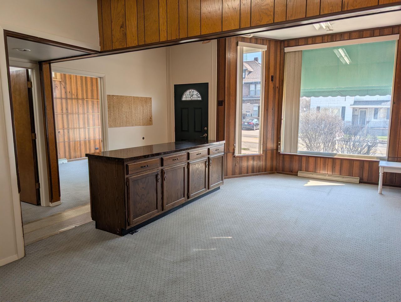 High-visibility professional office building with exposure to over 11,000 vehicles per day, offering excellent signage and easy access for clients and customers. This almost 1,300 square foot commercial space is ideal for professional office, medical, service business, or small business use. The current layout includes a large front reception with office area, conference room, spacious private front office, second private office, and a break area with refrigerator, along with ample storage throughout and a main-level half bath. The full usable basement provides additional functional space and includes a second half bath, offering flexibility for storage, workspace, or expansion of operations. Interior features include abundant windows throughout and ceilings over 10 feet high, creating an open and professional environment. The property also features a brick exterior for durability and low maintenance. Roof new within the last 5 years with a warranty remaining. Parking included. You won't want to miss this location and opportunity for your business!