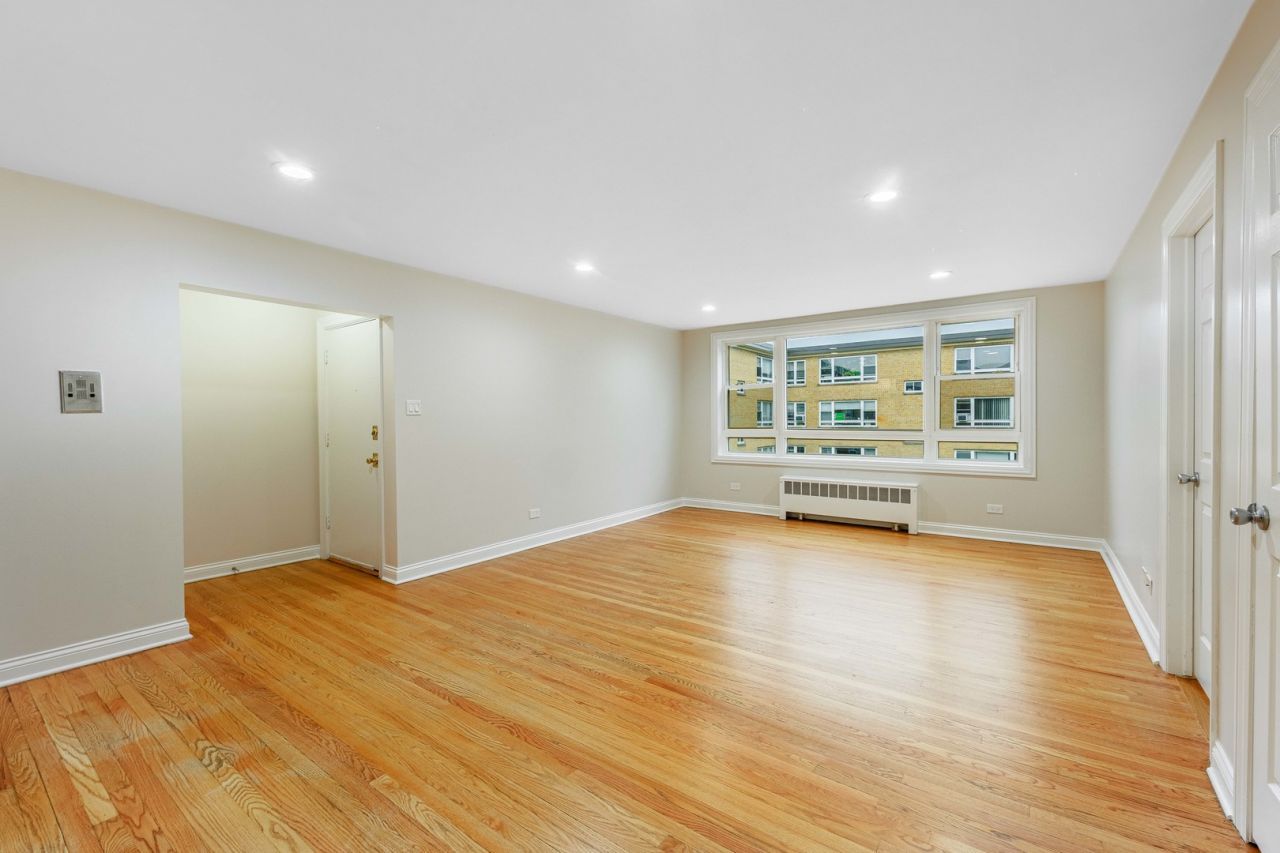 Updated 2 bed, 1 bath condo in West Ridge near Edgewater. Freshly painted with hardwood floors throughout, newer appliances, and great natural light. Bright, spacious layout with comfortable living and dining areas. Investor-friendly building with no rental restrictions. Convenient location near parks, dining, and public transportation.