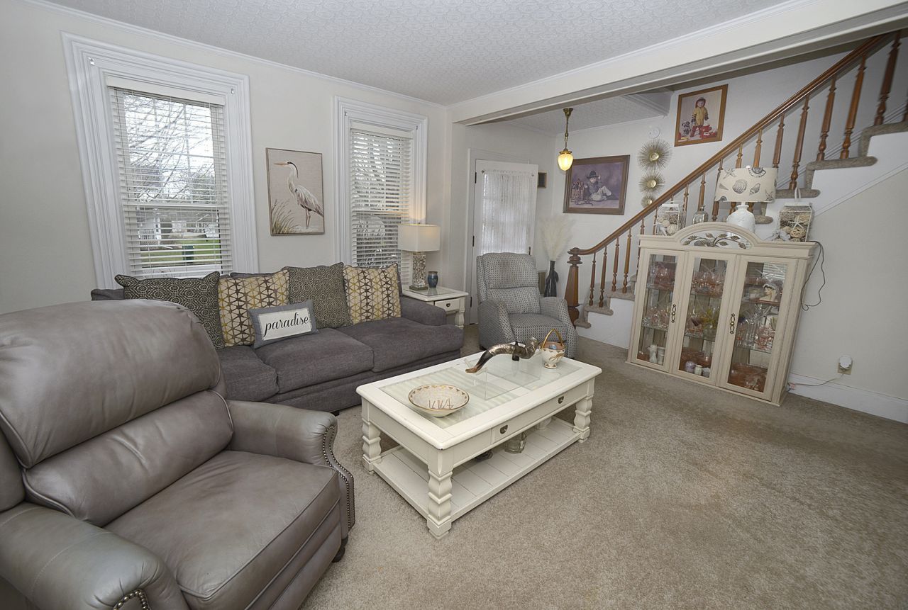 Timeless charm and character shine throughout this beautifully maintained Victorian home. A welcoming open staircase sets the tone, leading into a spacious layout with large living room and a separate formal dining room. Perfect for entertaining. The kitchen features a center island and vaulted ceiling with skylight, flowing seamlessly into a cozy sitting/TV area. Elegant details can be found throughout, including French doors, transoms, shutters and window coverings. The home offers 3 generously sized bedrooms and 2.5 bathrooms, with a convenient main-level bedroom, full bath, and a spacious first-floor laundry room complete with large peninsula for folding clothes and abundant storage. Upstairs, you'll find two additional bedrooms and a full bathroom. Step outside to a beautifully landscaped, oversized lot featuring mature trees, lush perennials, and a vinyl-fenced yard. Enjoy outdoor living on the large composite deck. A detached 2-car garage includes a walk-up attic, providing excellent additional storage space.