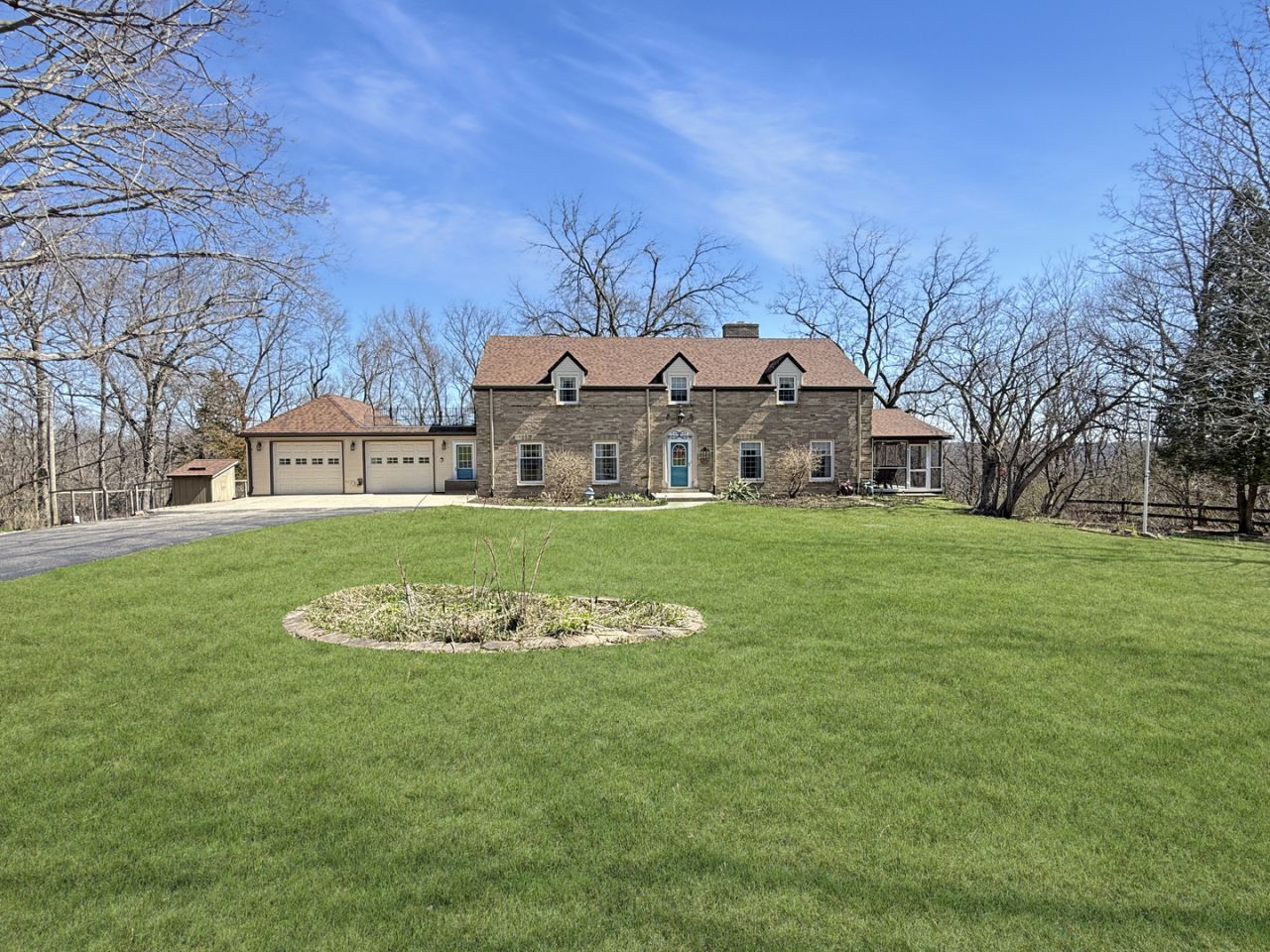 Tucked away on 4.78 wooded acres, this beautiful brick two-story home offers the perfect blend of privacy, space, and modern updates-just minutes from town. Featuring 4 bedrooms, a bonus room, and 3 full baths, the home is designed with both comfort and flexibility in mind. Inside, you'll find hardwood floors and a thoughtfully remodeled kitchen with a granite island, making it truly move-in ready. The inviting living room showcases a woodburning fireplace and flows seamlessly into the dining area. A main-level bedroom, full bath, and a flexible office/den or additional bedroom add versatility to the layout. Upstairs, the spacious primary suite offers a relaxing retreat with a sitting room, whirlpool tub, glass shower, walk-in closet, and abundant storage options. Blackout blinds in the primary bedroom provide added privacy and comfort, while the two additional upstairs bedrooms feature room-darkening shades. Outdoor living is just as impressive with a screened-in porch where you can unwind and take in peaceful wooded views-including a sightline to the iconic Blackhawk statue. A fenced garden with its own water spigot for those who love to garden. The 12x28 heated shop, along with an attached 20x28 garage, provides excellent space for hobbies, storage, or workspace needs. Major updates include new roofs on all buildings in 2023, Furnace 2018, Water Heater 2018, fiber optic internet, gas conversion with connections available for the kitchen, laundry, and fireplaces, additional radiant heat upstairs, and professionally installed permanent exterior lighting. Zoned R2 Residential. This property truly offers the best of country living with modern conveniences and room to grow.